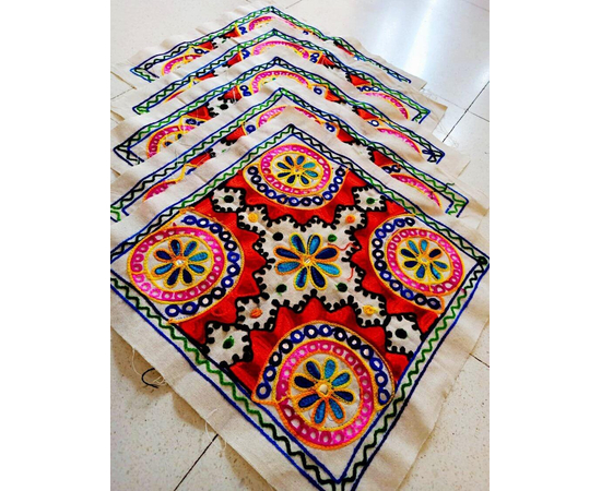 Mirror embroidery is a true reflection of the Rajasthani culture and is believed to have originated in Persia and later entered India through the Mughal Empire. The craftsmen in Rajasthan use pieces of mirrors, usually round in shape which are embroidered into pieces of cloths to render a beautiful look to the fabric. The patterns are first traced on the cloth and later the craftsmen do the embroidery using the tracing marks. The embroidery is done using beautiful threads which adds to the grace of the cushion cover. These are suitable to be used on sofas, couches, beds, in the lounges etc. By adding these to your home decor you will bring a feel of Rajasthani Culture to your home. The stylish cushion cover is 40 x 40 cm (16x16 Inches) in size and can fit a cushion of size 15 to 17 inches.