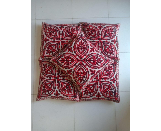 WHITE BASE RED CUSHION COVERS (SET OF 5)/MULTICOLOR WOOLEN THREAD EMBROIDERED COVERS