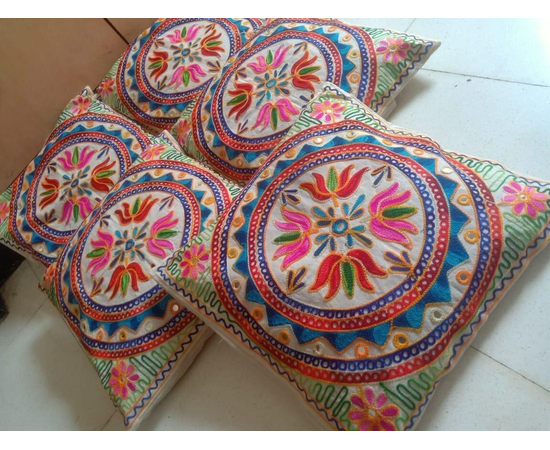 1,12,000 Artisans families benefited so far| SIZE- 16x16s Material- Thread woolen Washable 5 PIECE SET CUSHION COVERS |