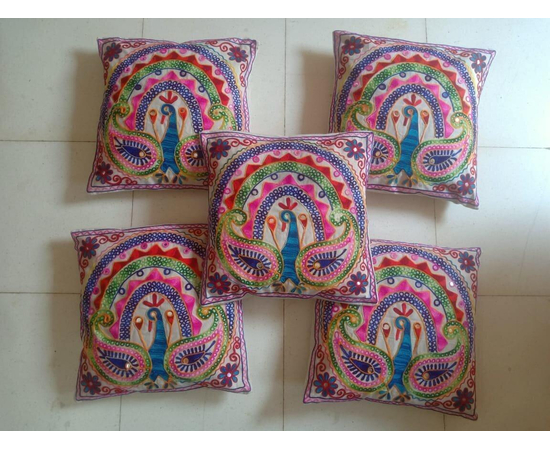 Mirror embroidery is a true reflection of the Rajasthani culture and is believed to have originated in Persia and later entered India through the Mughal Empire. The craftsmen in Rajasthan use pieces of mirrors, usually round in shape which are embroidered into pieces of cloths to render a beautiful look to the fabric. The patterns are first traced on the cloth and later the craftsmen do the embroidery using the tracing marks. The embroidery is done using beautiful threads which adds to the grace of the cushion cover. These are suitable to be used on sofas, couches, beds, in the lounges etc. By adding these to your home decor you will bring a feel of Rajasthani Culture to your home. The stylish cushion cover is 40 x 40 cm (16x16 Inches) in size and can fit a cushion of size 15 to 17 inches.