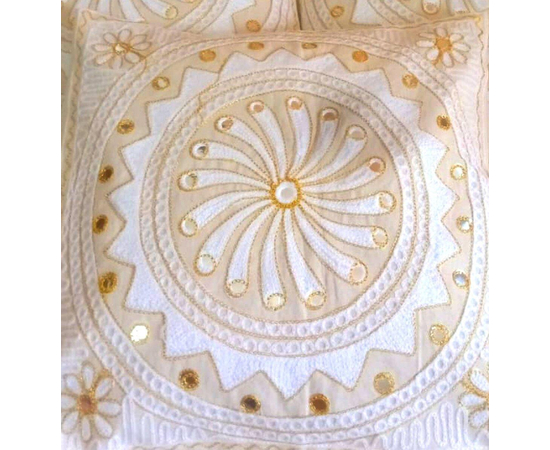 Update your home decor with our beautiful and comfortable elegant cushion cover that will fit any chair, sofa, or bed. The cushion cover is made of cotton cloth with an elegant acrylic mirror embroidery all over, and a flap that allows easy insertion and removal of pillow inserts.