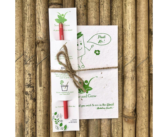 - A PENCIL WITH A SEED - The seed pencil contains plants variants : Marigold, Tomato, Chilli, Okra, Brinjal, Basil, Coriander, Methi, Sunflower, Spinach - It can be planted at home, at the office, or in the classroom - High Quality Seeds