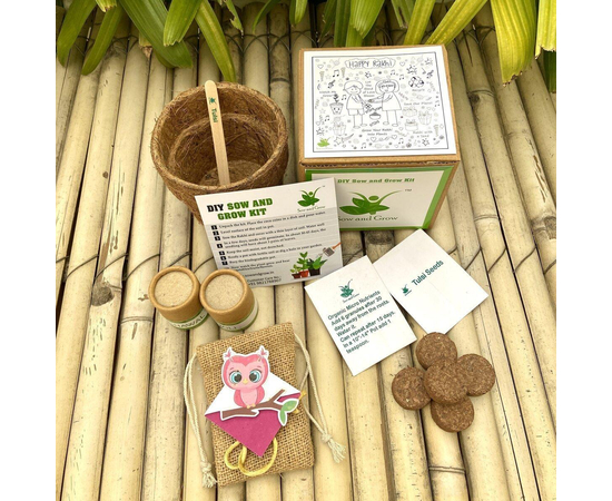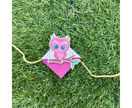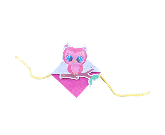 Pink Owl on a Branch :Kids 3-in-1 Bookmark Plantable Rakhi | Rakhi with Tulsi Seeds | Combo with a Gardening Kit