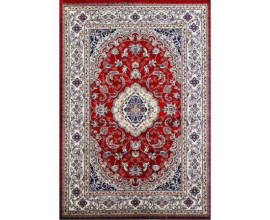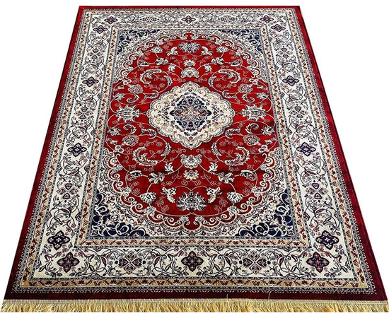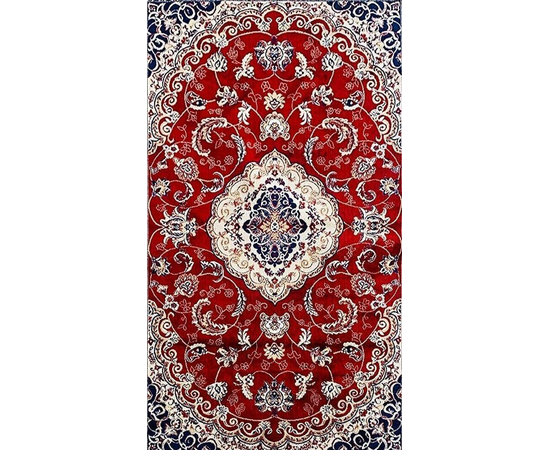 Indian Kashmiri Carpet, Woolen Carpet, Rug, Area Rug, Persian Carpet, Red & Blue Power-Loomed 5 X 7 Feet Silk Carpet