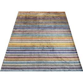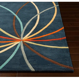 5x8 ft. Handmade Woolen Geometric Rug, Home Decor, Area Rugs, Navy Blue Office Rug With Multicolour Stripes Indian Chic