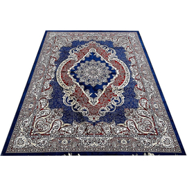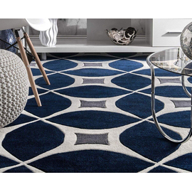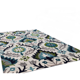 Authentic 6x8 Feet Hand Woven Organically Dyed Blue & White Floral Geometric Pattern Home Floor Woolen Hand Tufted Rug