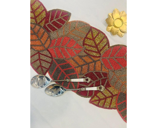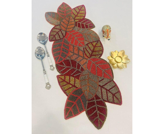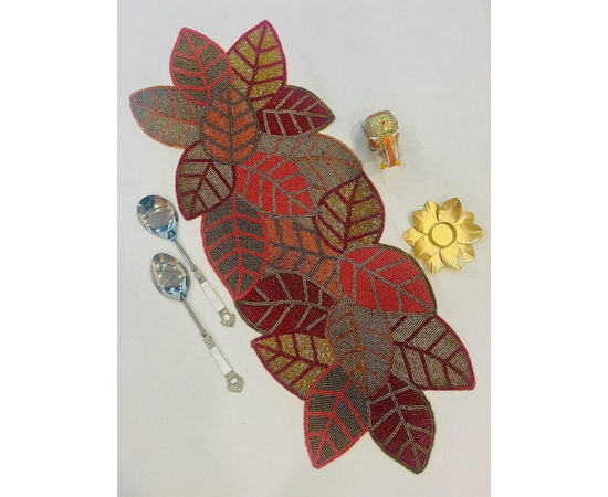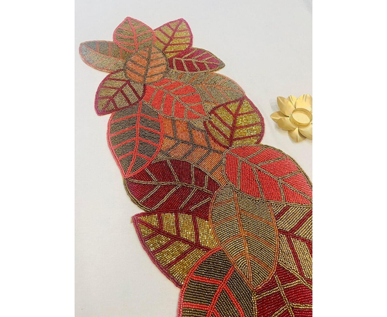 Handmade Beautiful Beaded Red Gold Leaf Spring Festival Design Table Runner Craftsmanship Measure 13 * 36 Inches
