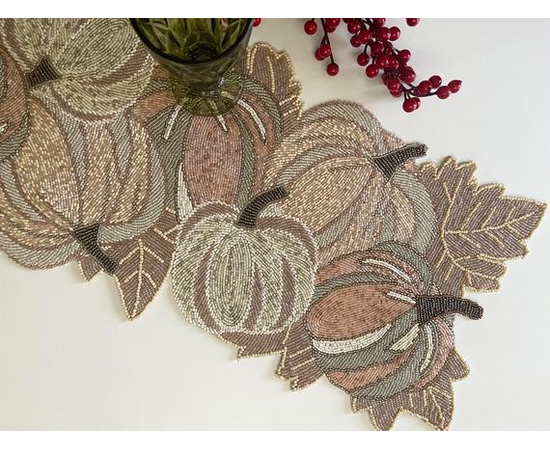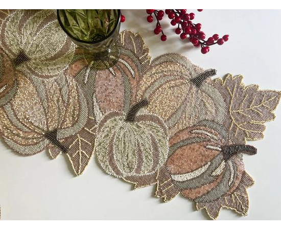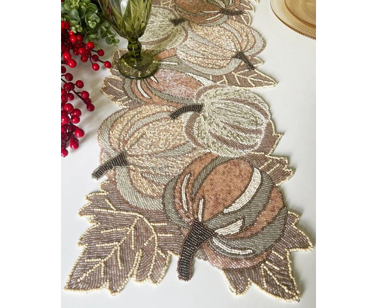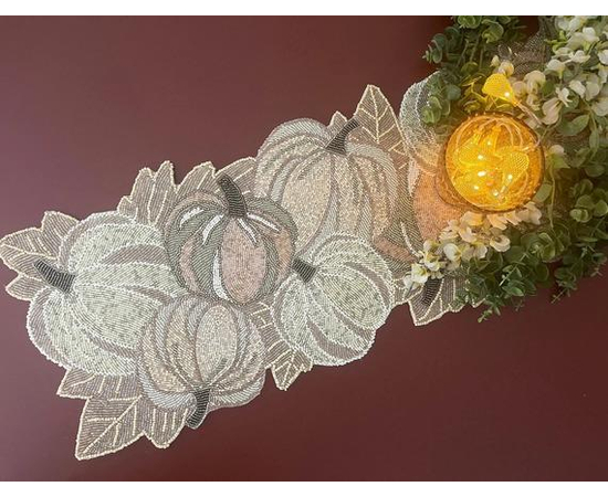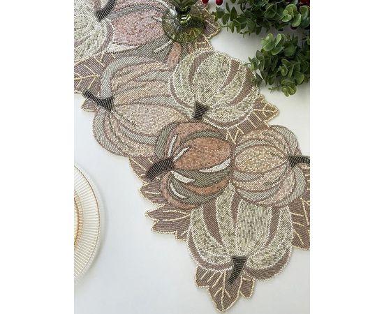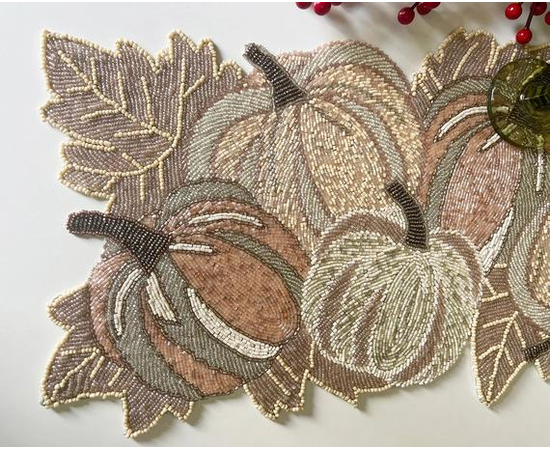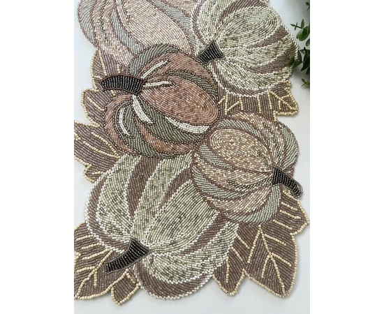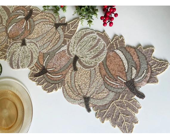 Handmade bead Table runner, pumpkin multicolor fall runner | Dining Table decoration