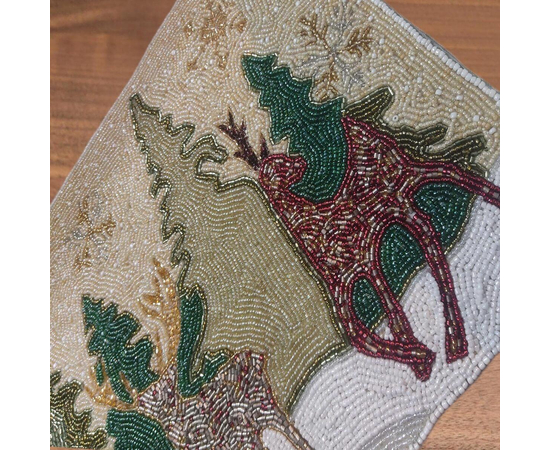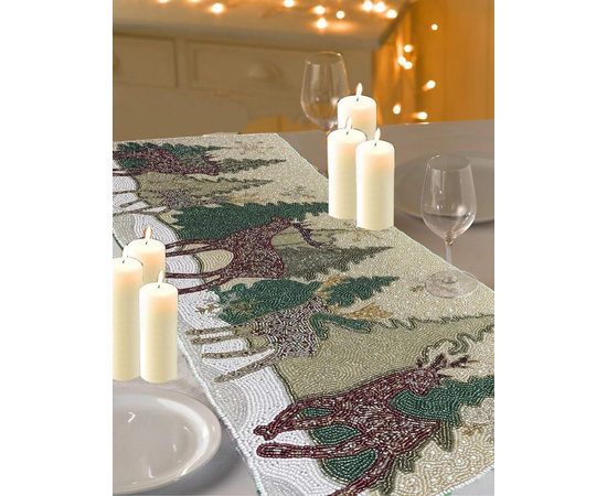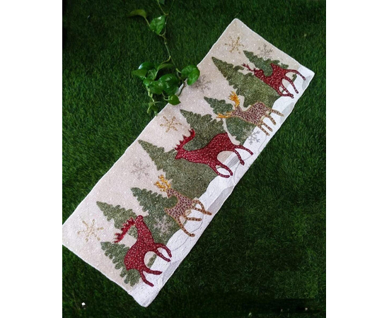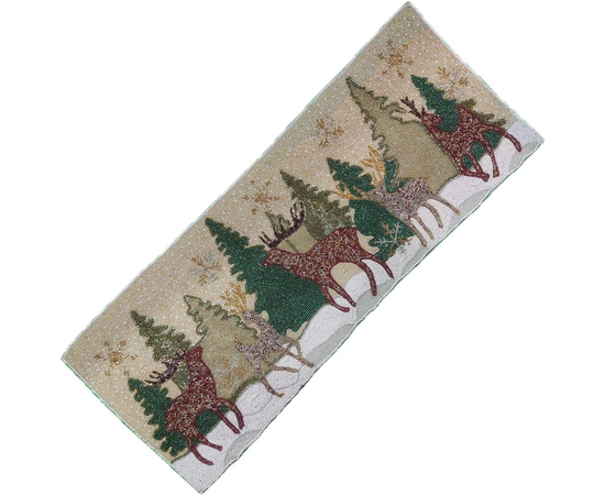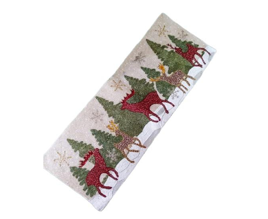 Reindeer Christmas Tree Decoration Scenery Winter Wonderland Snow Beaded 36-inch Handmade Table Runner