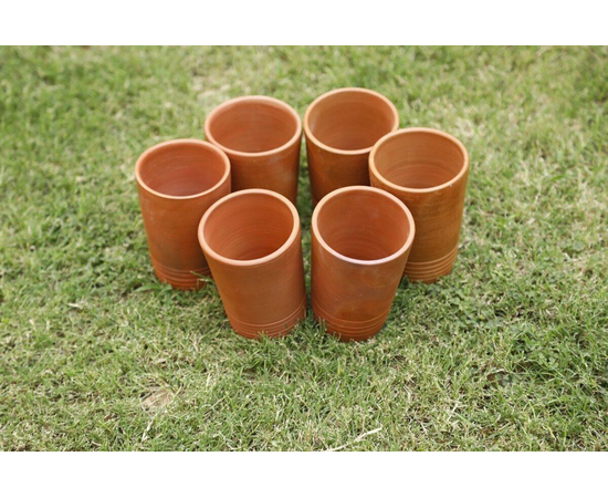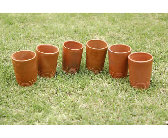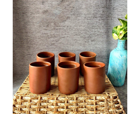Indian Handmade Terracotta Glass Set Reusable Cool Water Glass (SET OF 6)