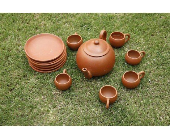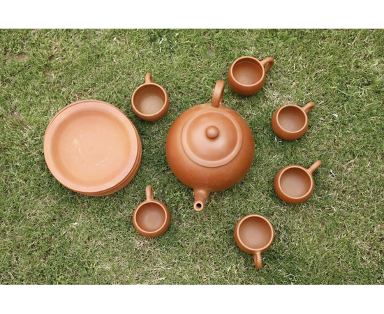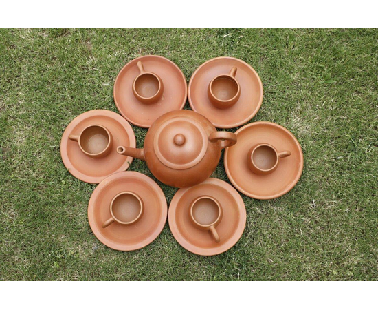 Brown Terracotta Designer Tea Set 1 Tea Kettle + 6 Tea cups + 6 Saucers