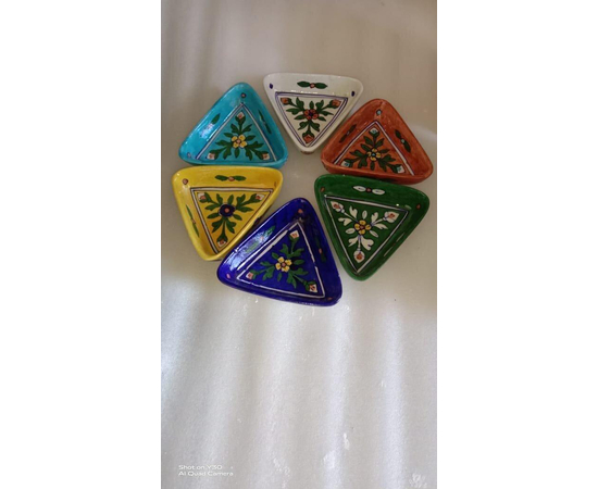 Handmade Blue Pottery Tray - Hand Crafted Ceramics Decorative Tray for Home Dining Set Of 6 Triangular Serving Trays Trays & Platters Tray Size 4X4 Inches