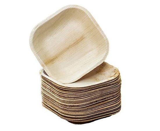 Disposable palm leaf plate, Natural Sustainable, square plates compostable - Bio-degradable - eco friendly, Areca Leaf Plates 4.5X4.5 Inch Square Plate (Pack of 10)