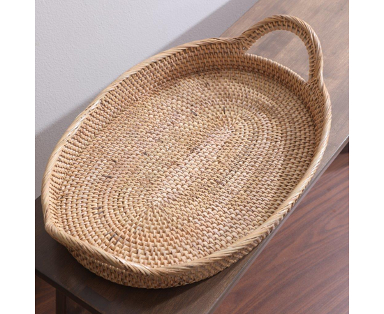 Handmade Oval Serving Tray, Wicker Decorative Table Tray, Flat Serving Oval with Handles