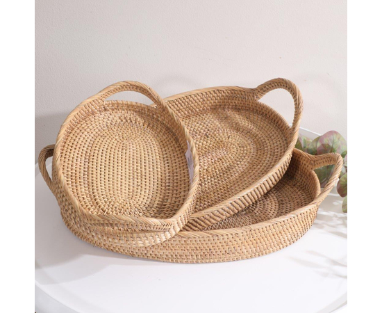Rattan trays are functional and decorative items made from rattan, a type of vine that is commonly found in tropical regions. Rattan is known for its flexibility and durability, making it an ideal material for crafting trays