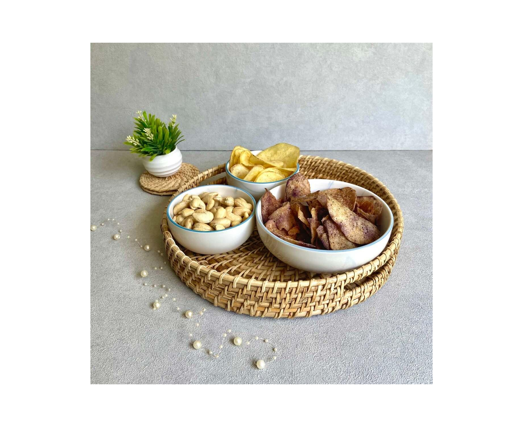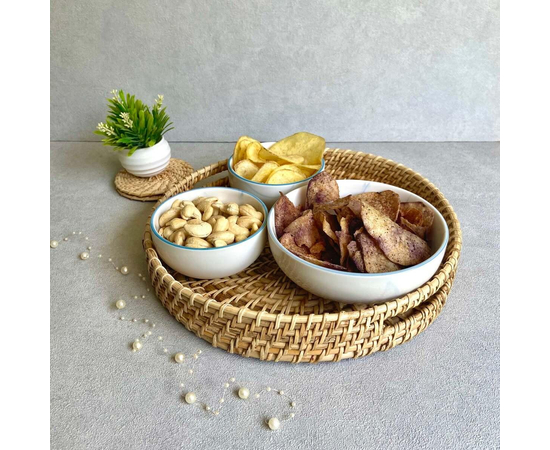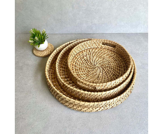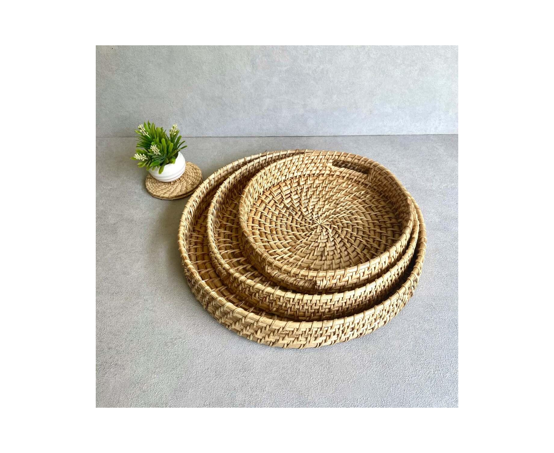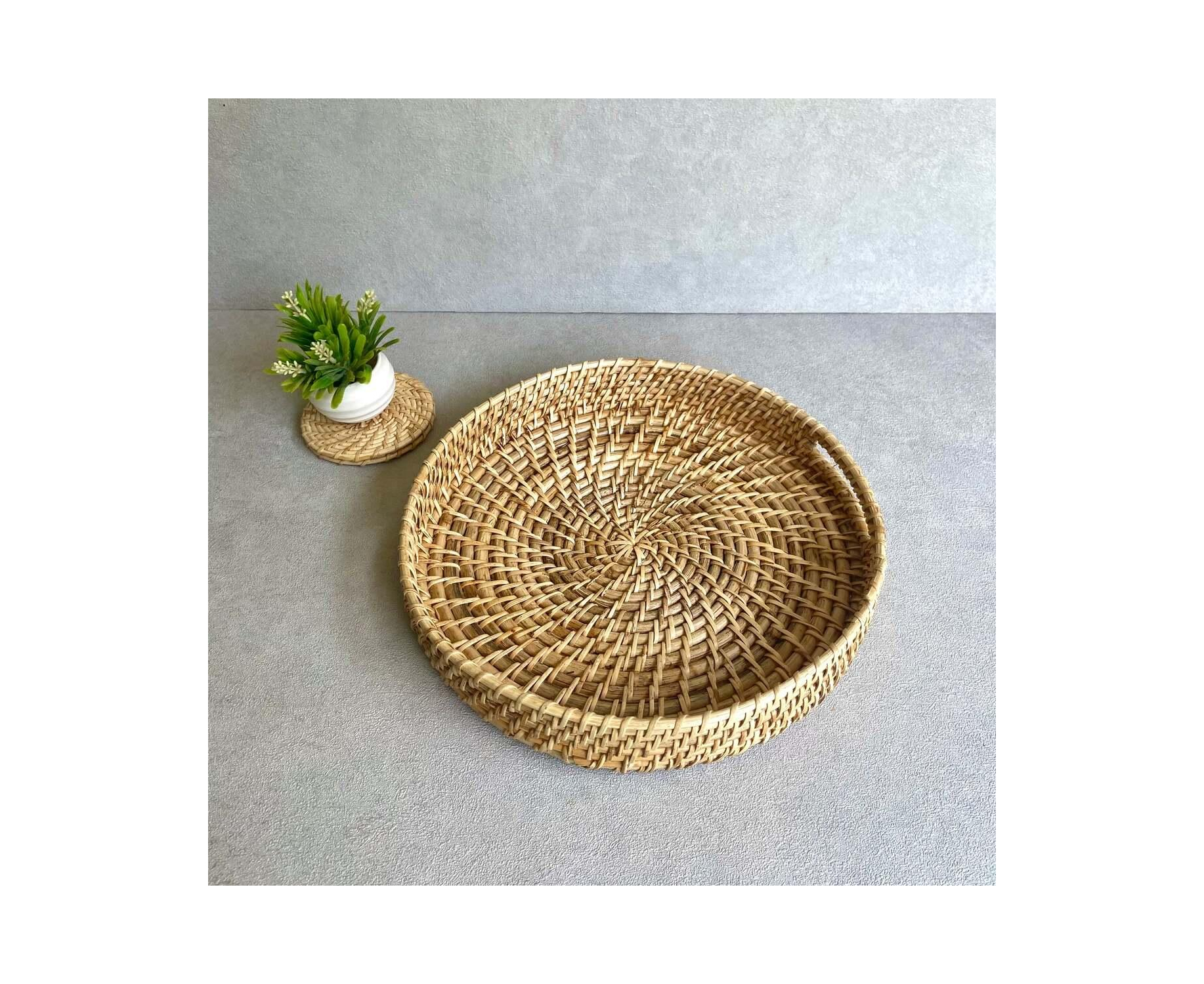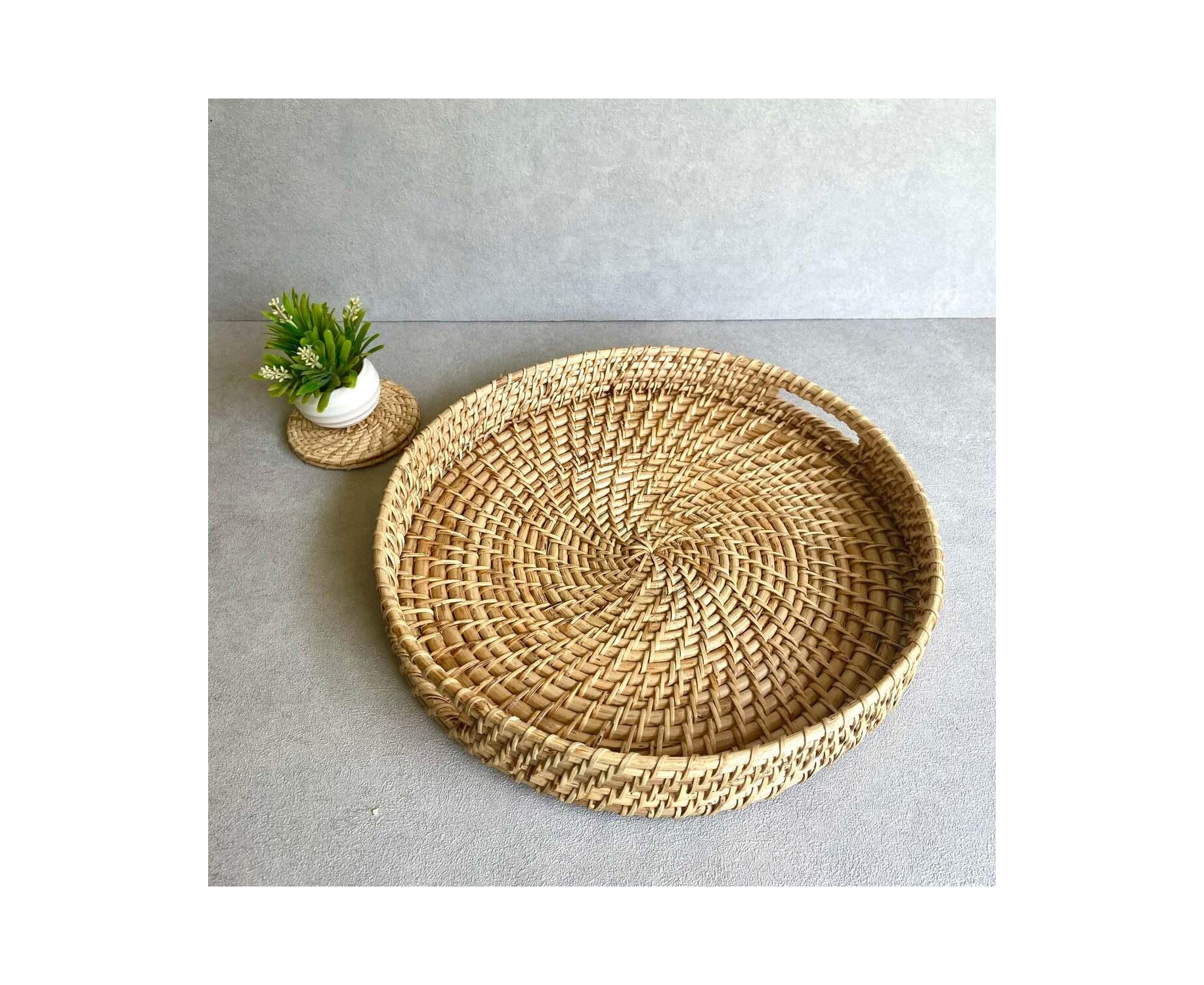 Rattan trays are functional and decorative items made from rattan, a type of vine that is commonly found in tropical regions. Rattan is known for its flexibility and durability, making it an ideal material for crafting trays