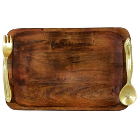 Solid Natural Wood Serving Tray with Spoon and Fork Metal Handle | Decoration and Gift Hamper Packing Tray Sizzler Tray (Sizzler Tray)