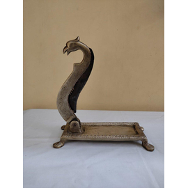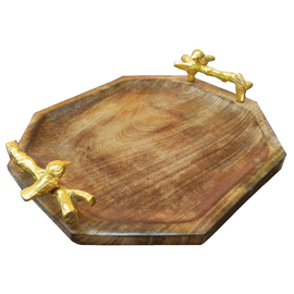 Solid Natural Wood Octa Gonal Serving Tray with Bird Sitting on Branch Metal Handle | Decoration and Gift Hamper Packing Tray Sizzler Tray (Sizzler Tray)