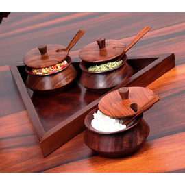 Creation India Craft Wooden Triangular Mukhwas Freshener Jars Set with Tray & Spoons - Saunf/Misri Mouth Freshener for Dinning Table - Restaurants Decor Stor...