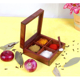 Creation India Craft Wooden Spice Box With Spoon , Masala Box, Spice Rack Organizer For Kitchen Storage, Multipurpose Table Top storage box, Handmade In She...