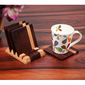 Creation India Craft Wooden Tea Coasters for Cup with Stand Set of 4 for Office Table Decorative Coaster Set for Dining | Tea Cups Coffee Mugs Beer Cans Bar ...