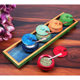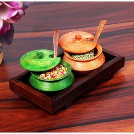 Creation India Craft Wooden Serving Jars Set with Tray and Spoons Rectangular Set for Dining Table Saunf Containers, Mouth freshener mukhwas matki bowls, 60 ...