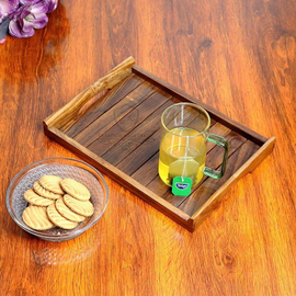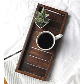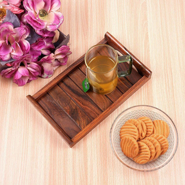Creation India Craft Handmade Wooden Serving Tray, Tableware, Sheesham rosewood serving tray, Bed serving Tray, Wooden kitchen decor, Country style, Pack of ...