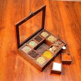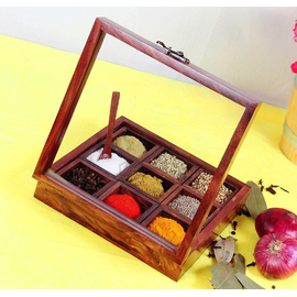 Creation India Craft Wooden Spice Box With 9 Containers & Spoon in Sheesham, Rosewood spice box, wooden spice organizer, Masala Daani Namak Dani Jars, Brown ...