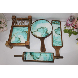 SEA GREEN COLOR KHAT PLATTERS, HANDMADE WOODEN PLATTER, HANDMADE PLATTER FOR TABLEWARE, DINNERWARE, SERVING PLATE SET OF 4
