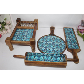 BLUE COLOR KHAT PLATTERS, HANDMADE WOODEN PLATTER, HANDMADE PLATTER FOR TABLEWARE, DINNERWARE, SERVING PLATE SET OF 4