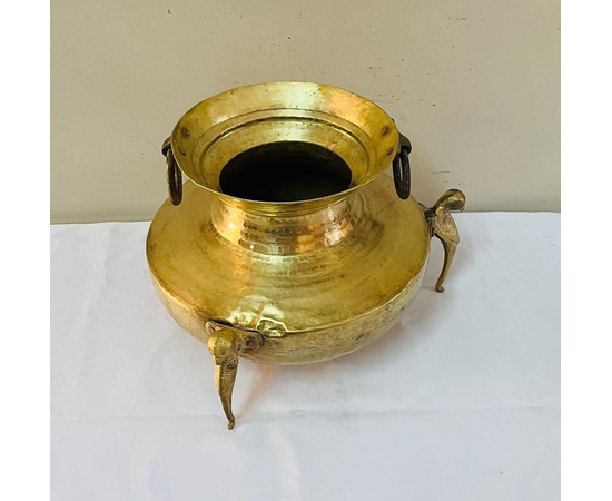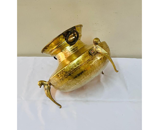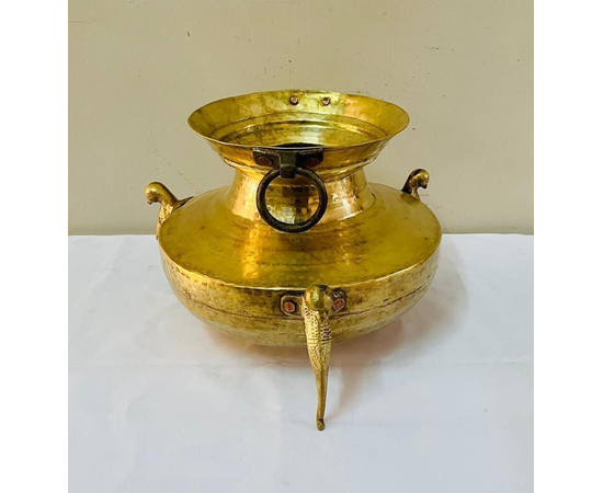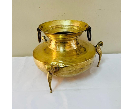 This Vintage Brass Pot Try on Parrot Legs (with Handle) is a vintage collection of Rajasthani Royal Colonial Era - Heritage of Haveli Culinary and Culture.