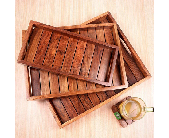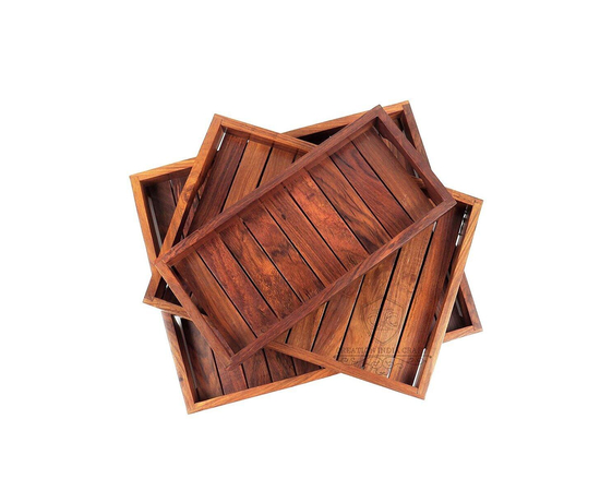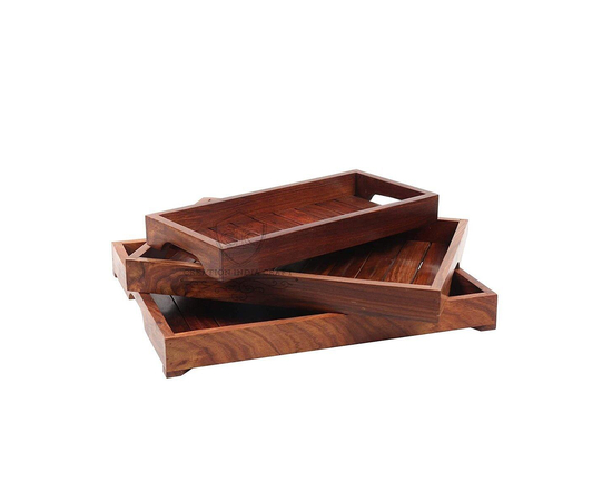 - Bring this set of elegant serving trays crafted in Sheesham Wood, to enhance your way of serving to your guests.