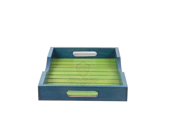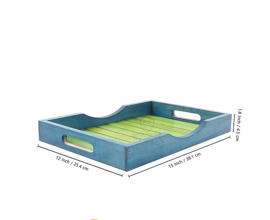 Creation India Craft Hand Painted Wooden Serving Tray - Unique Coloured Designer sheesham Wood Tray for Home, Kitchen, Bar, Restaurant - Tray For Home & Kitchen Decoration - Multipurpose Tray ( In Green )