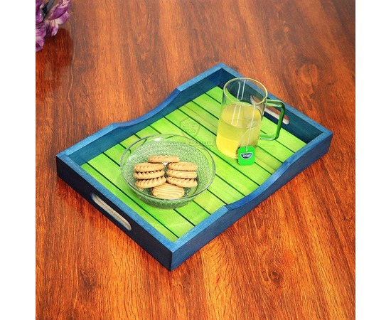Constructed from premium quality wooden material, this tray is highly durable in nature. This tray is very elegant in design with strips on the surface that add a distinctive & classy touch when kept on the dining table. The handles are given a curved finish which reflects sophistication. These trays make serving tea, snacks, coffee, finger foods, cakes cheeses, bread & crackers great for parties & events. This wooden tray is ideal for serving food, decorating your home & cutting clutter in any space. The wooden tray is heat resistant so that you can serve hot tea & other hot snacks without any trouble at all. It provides a perfect touch to your kitchen & dining collections.