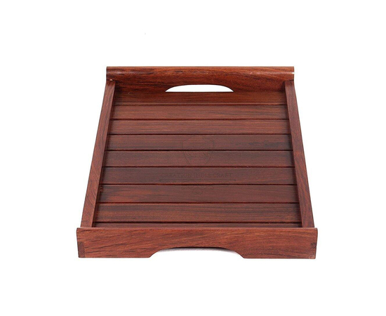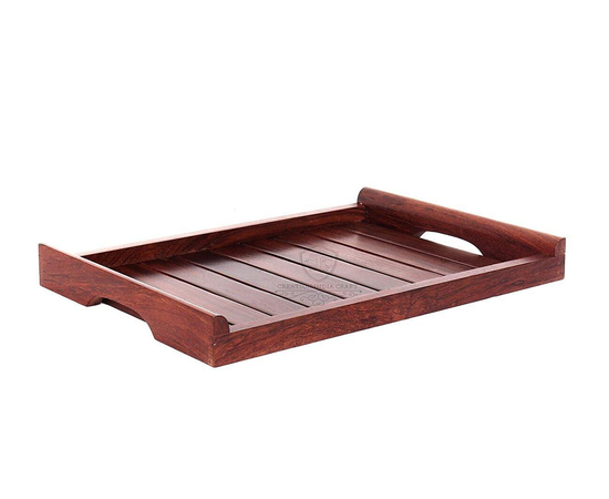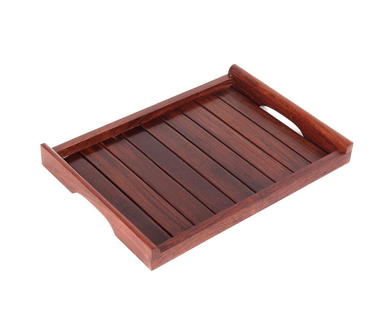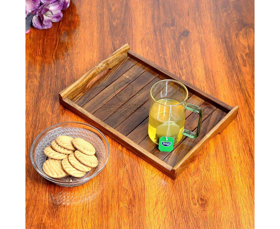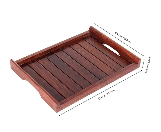 Constructed from premium quality wooden material, this tray is highly durable in nature. This tray is very elegant in design with strips on the surface that add a distinctive & classy touch when kept on the dining table. The handles are given a curved finish which reflects sophistication. These trays make serving tea, snacks, coffee, finger foods, cakes cheeses, bread & crackers great for parties & events. This wooden tray is ideal for serving food, decorating your home & cutting clutter in any space. The wooden tray is heat resistant so that you can serve hot tea & other hot snacks without any trouble at all. It provides a perfect touch to your kitchen & dining collections.