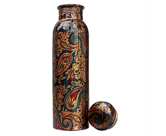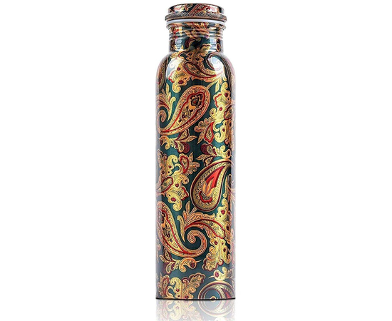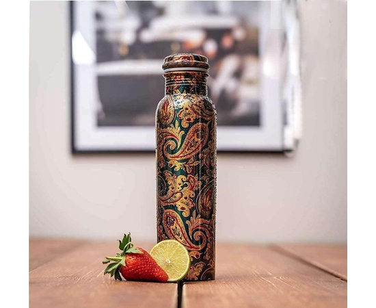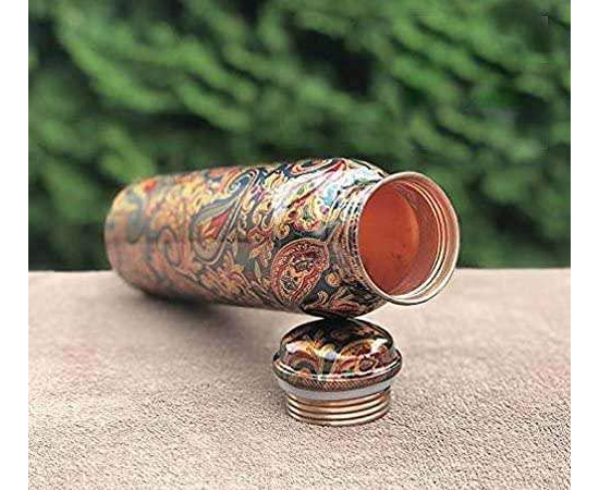 Handmade Printed Pure Copper Water Bottle With Advanced Leak Proof Protection And Joint Less, Ayurveda And Yoga Health Benefits