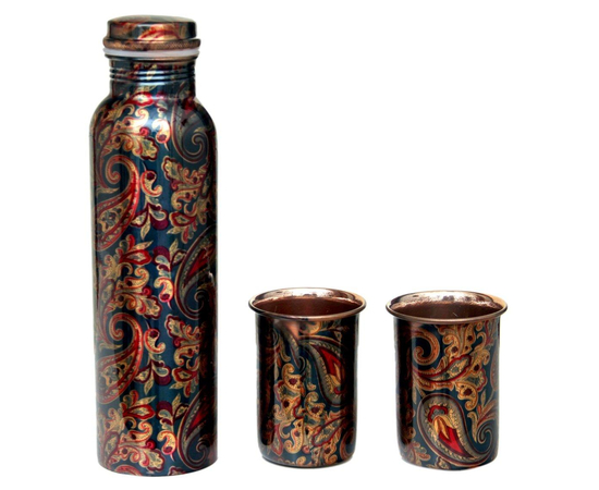 Meenakari Copper Bottle Set - Exquisite Handcrafted Indian Artistry