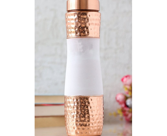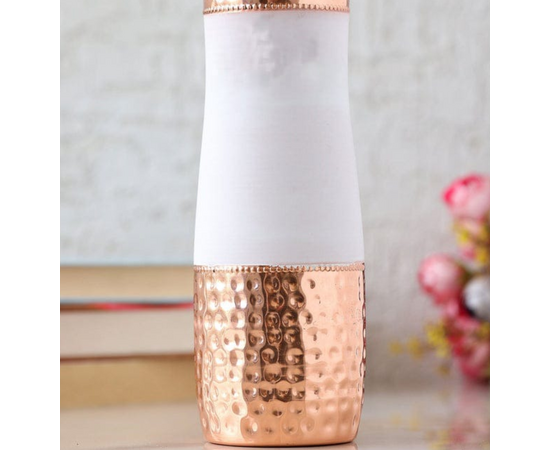 Pure Copper Water Bottle With Half Hammered Lacquer Champion Design, Drink ware & Storage Purpose, Ayurveda Health Benefits