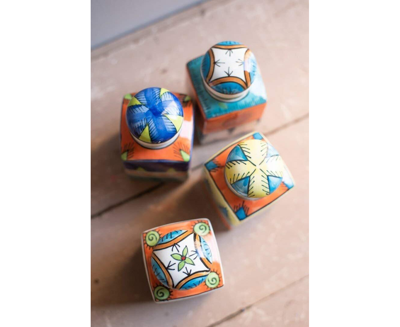 You can use them as both decorative e pieces as well as effective storage jars. To be placed on your dining table, kitchen counters and even on a show case! These are totally safe and BPA free and non plastic ceramic material which has virtually endless life. Their pottery tended to be hand painted with fine details, deep colors, and a variety of hand spun designs.