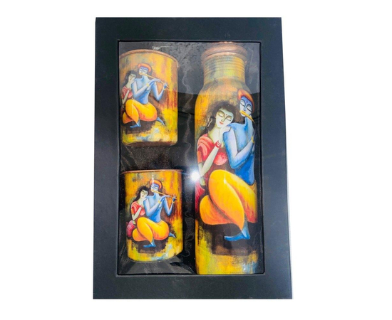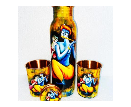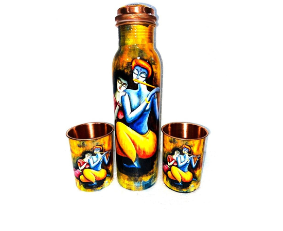 Vedic Vibes Copper Water Bottle - Radha Krishna Printed copper bottle set