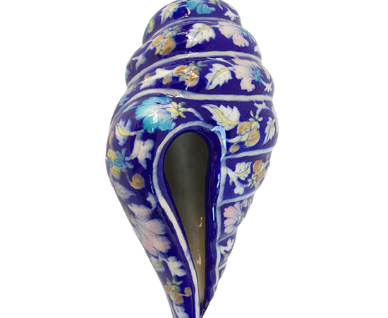 Elevate your home decor with the exquisite Blue Pottery Handcrafted Con Shell (Decorative Shankh)-98. Handmade with precision, this decorative shankh showcases a captivating blue color and intricate detailing, making it a standout piece for any space. Its unique design and craftsmanship add a touch of elegance and serenity to your home. However, please handle it with care, as it is fragile and should be hand washed to ensure its longevity.
