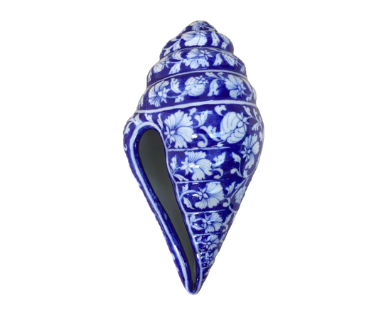 Elevate your home decor with the exquisite Blue Pottery Handcrafted Con Shell (Decorative Shankh)-98. Handmade with precision, this decorative shankh showcases a captivating blue color and intricate detailing, making it a standout piece for any space. Its unique design and craftsmanship add a touch of elegance and serenity to your home. However, please handle it with care, as it is fragile and should be hand washed to ensure its longevity.