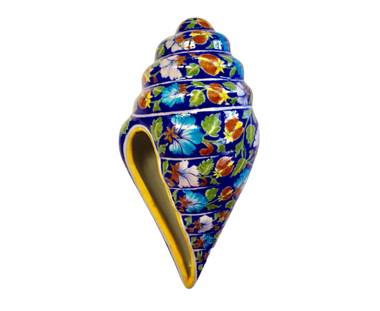 Elevate your home decor with the exquisite Blue Pottery Handcrafted Con Shell (Decorative Shankh)-98. Handmade with precision, this decorative shankh showcases a captivating blue color and intricate detailing, making it a standout piece for any space. Its unique design and craftsmanship add a touch of elegance and serenity to your home. However, please handle it with care, as it is fragile and should be hand washed to ensure its longevity.