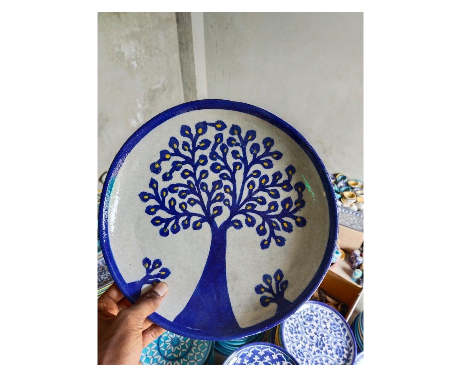 - Handcrafted Blue Pottery Decorative Plate with traditional motifs.