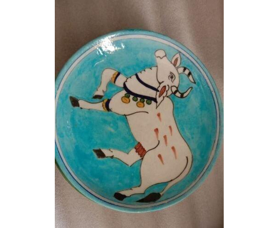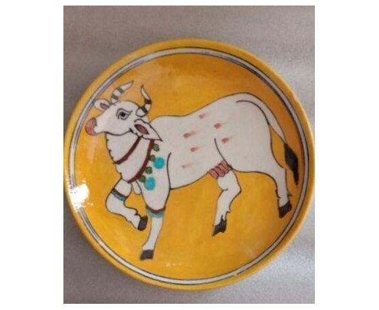 - Handcrafted Blue Pottery Decorative Plate with traditional motifs.