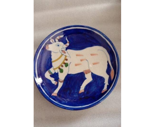 • Handcrafted Blue Pottery Decorative Plate with traditional motifs.