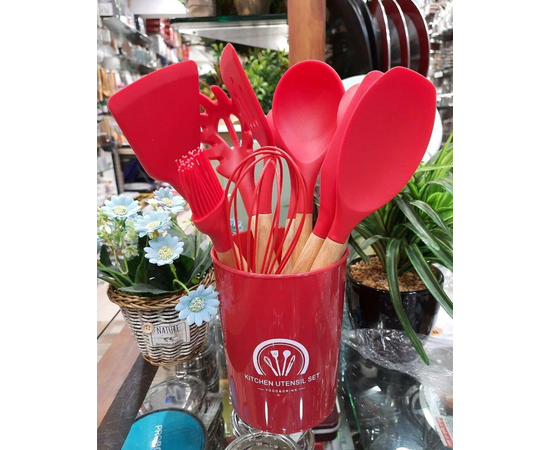 Material: Silicon with Wooden Handle New Kitchen Utensil set of 12 pcs