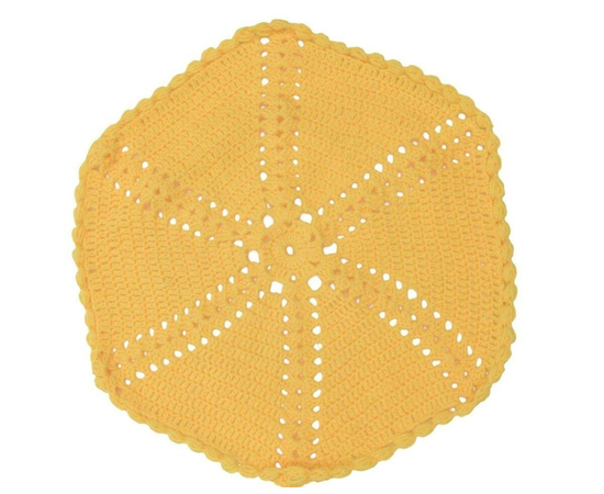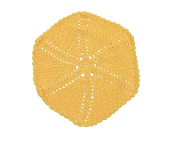 New hand-crocheted yellow doily. This beautiful, lacy doily would be an elegant centerpiece, a lovely accent for your home. This special material is strong and durable. You can see how the thread has a beautiful appearance, higher luster, deeper color penetration, and color retention. Not only does the thread seem more vibrant it will retain this look and soft elegant feel for a very long time.