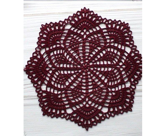 Handmade crocheted doily from high quality cotton yarn in maroon color. This product is hand knitted by the rural women artisan of Narsapur Lace cluster, Andhra Pradesh, India.