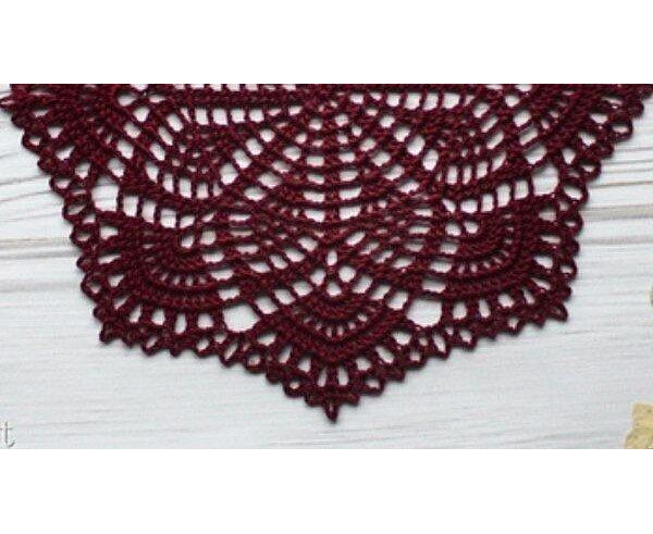Handmade crocheted doily from high quality cotton yarn in maroon color. This product is hand knitted by the rural women artisan of Narsapur Lace cluster, Andhra Pradesh, India.